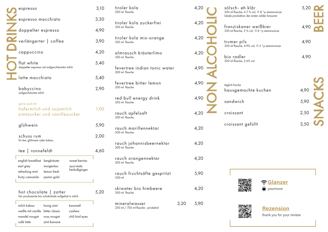 Welcome to Glanz & Glory Shop, a delightful art café nestled in the heart of Sölden, Austria. This charming venue at Dorfstraße 25 beautifully combines a cozy atmosphere with quality offerings. Known for its lovely cappuccinos and exceptional apple cake, it's a haven for anyone craving a sweet moment after skiing. Customers praise the friendly service and the inviting ambience, although some have noted room for improvement regarding espresso quality.